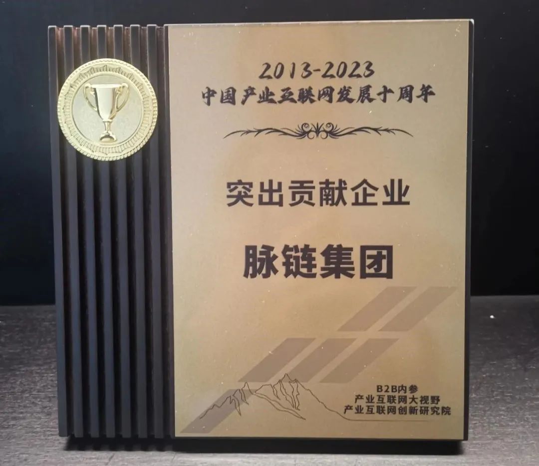 脉链集团荣获“2013-2023中国产业互联网发展十周年突出贡献企业”的荣誉称号,董事长徐伟强先生荣获“2013-2023中国产业互联网发展十周年突出贡献企业家”的殊荣。这两项荣誉不仅是对脉链集团和徐伟强先生在业界成就的认可,也是对脉链未来发展前景的极大期待。