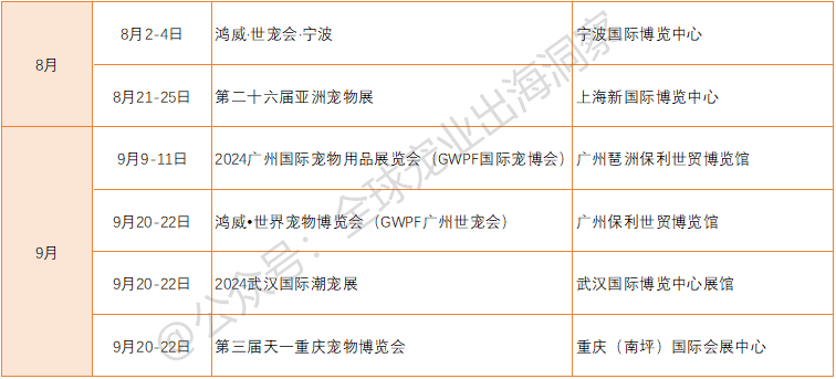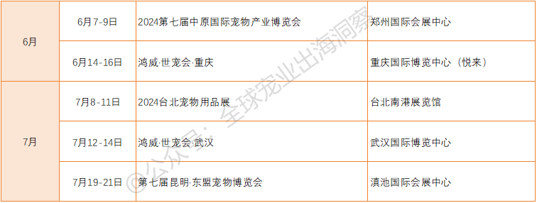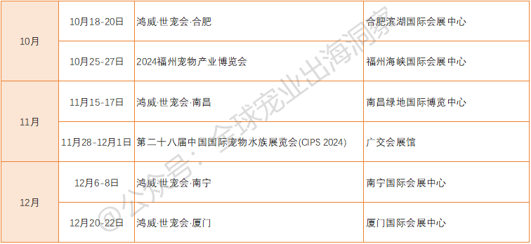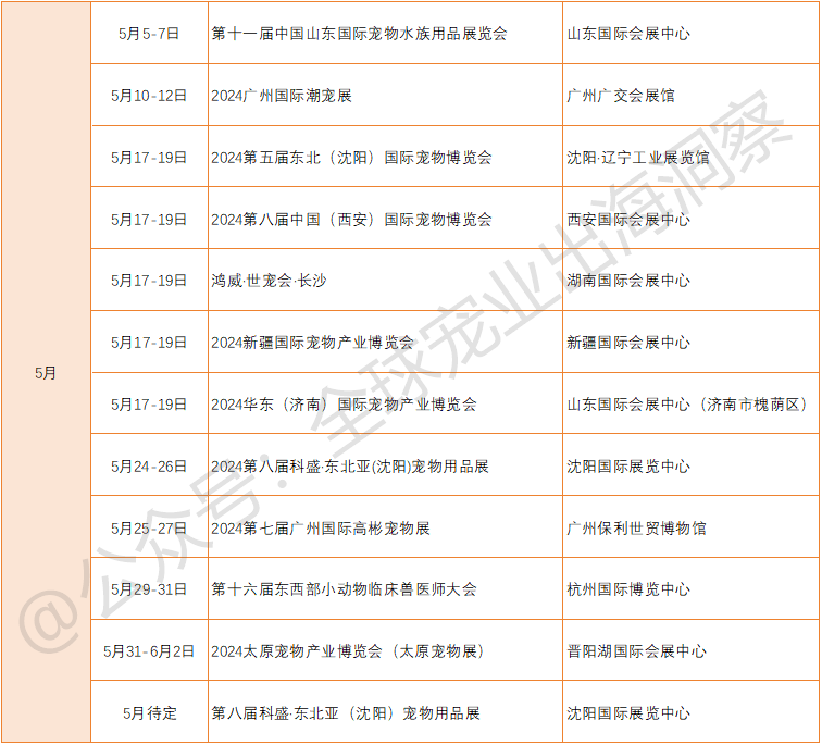 目前已官宣举办的国内宠物展会,包括但不限于(如下表):