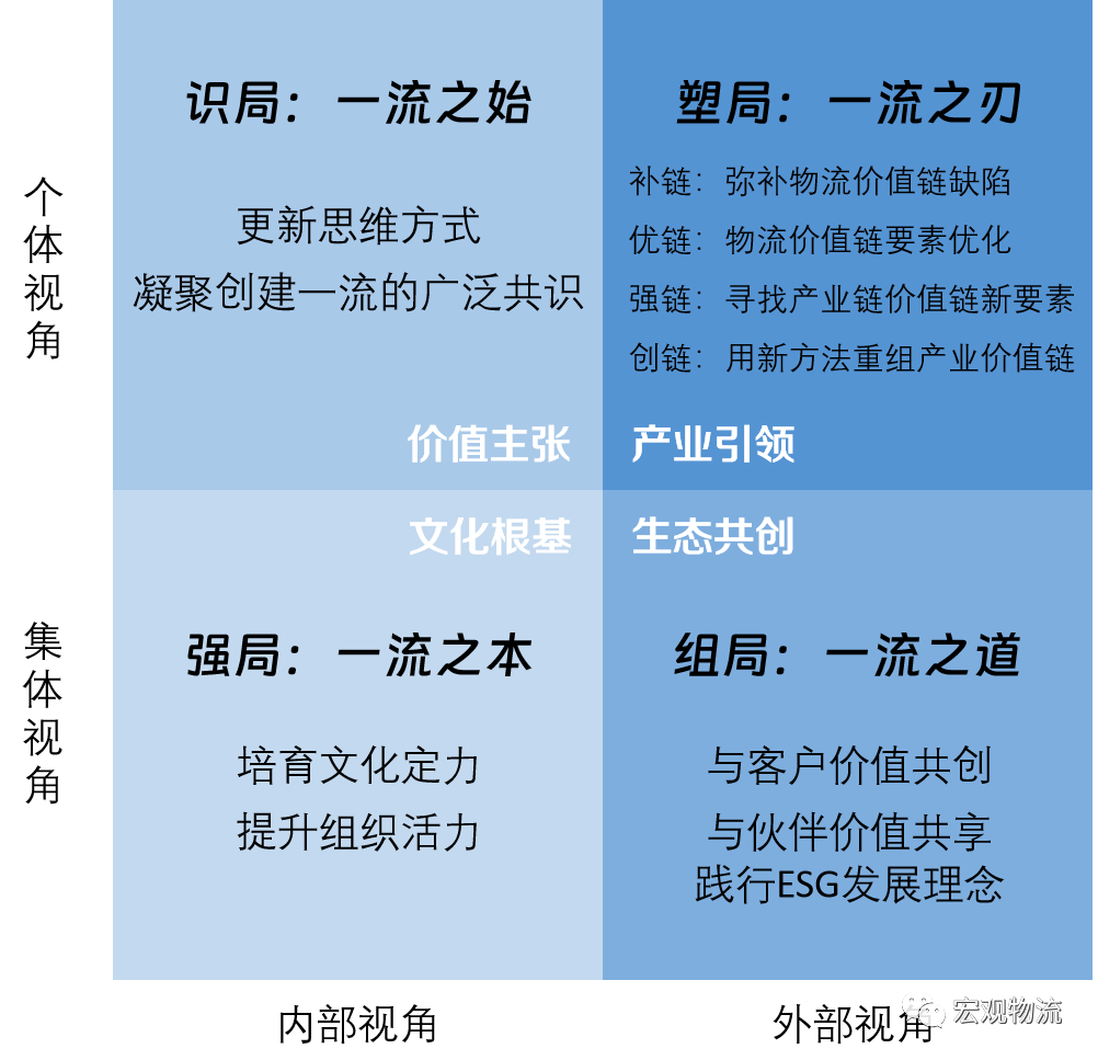 从更广阔的视角来看,“一流”是一种价值主张,一种力量,一种勇气,一种追求。一流物流企业作为产业的的推动者,携巨大物流和人流量而兴百业,打造成经济发展新动能、新引擎。