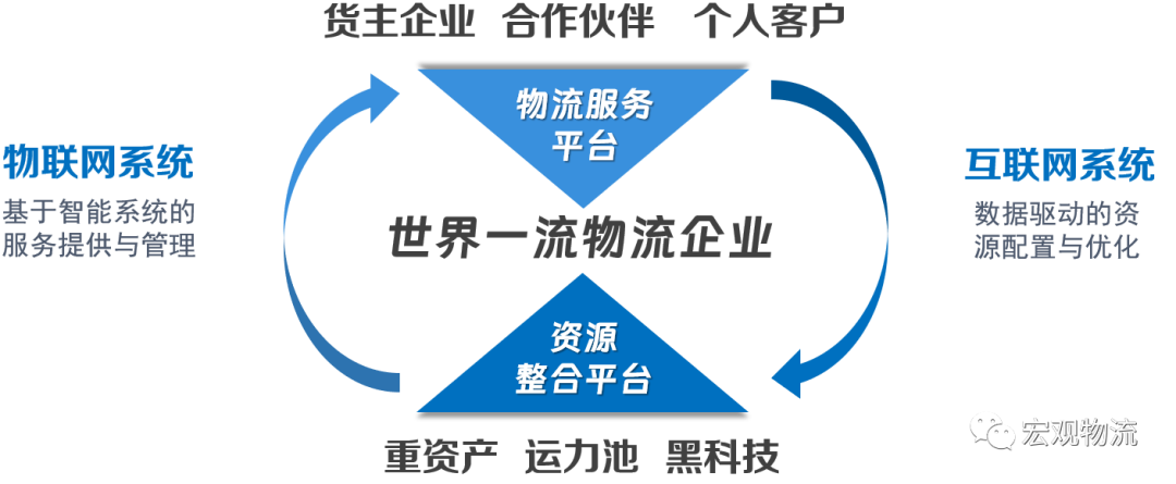 2. 构建两大系统。世界一流物流企业一定是以市场化、产品化、数字化为驱动,重构新内核,必将是科技型、平台型企业,以信息技术为组织工具,以数据为优化驱动,连接上下游资源,形成资源的集约效应,与服务的产品化输出。
