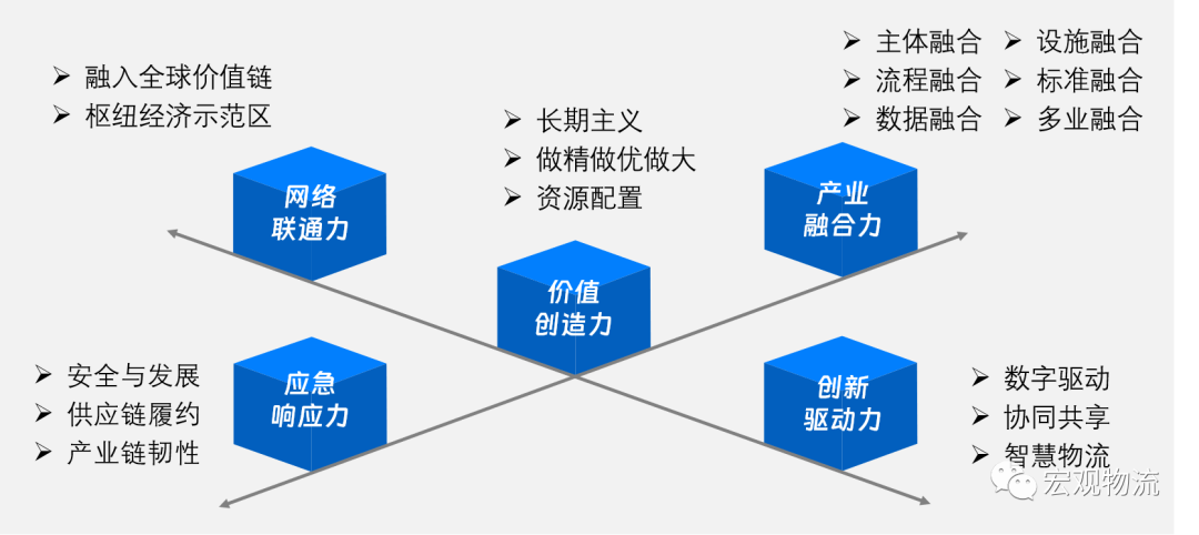 中国物流与采购联合会何黎明会长为世界一流物流企业给出了五者定位和五力模型:即做物流产业的引领者,做物流网络的搭建者,做物流创新的推动者,做物流格局的破局者,做社会责任的倡导者。