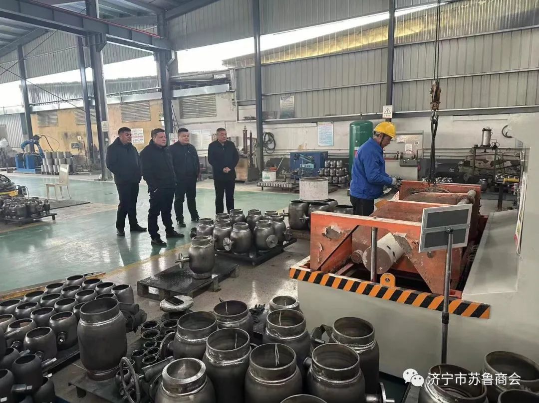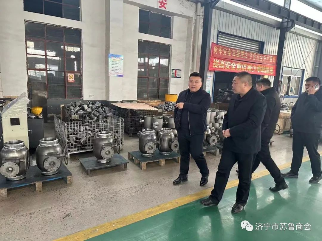 为了更好的了解会员企业需求,倾听企业心声,做好商会服务工作,推动会员企业高质量发展。2023年12月28日,济宁市苏鲁商会执行会长兼秘书长王义国、监事长张宏、副会长张万舵、理事吕晓庆、刘慧等一行深入济宁市苏鲁商会常务副会长单位山东太祥阀门有限公司进行实地学习走访调研,深入了解常务副会长企业的运营模式与经营状况,助力解决企业诉求及向优秀企业考察学习。
