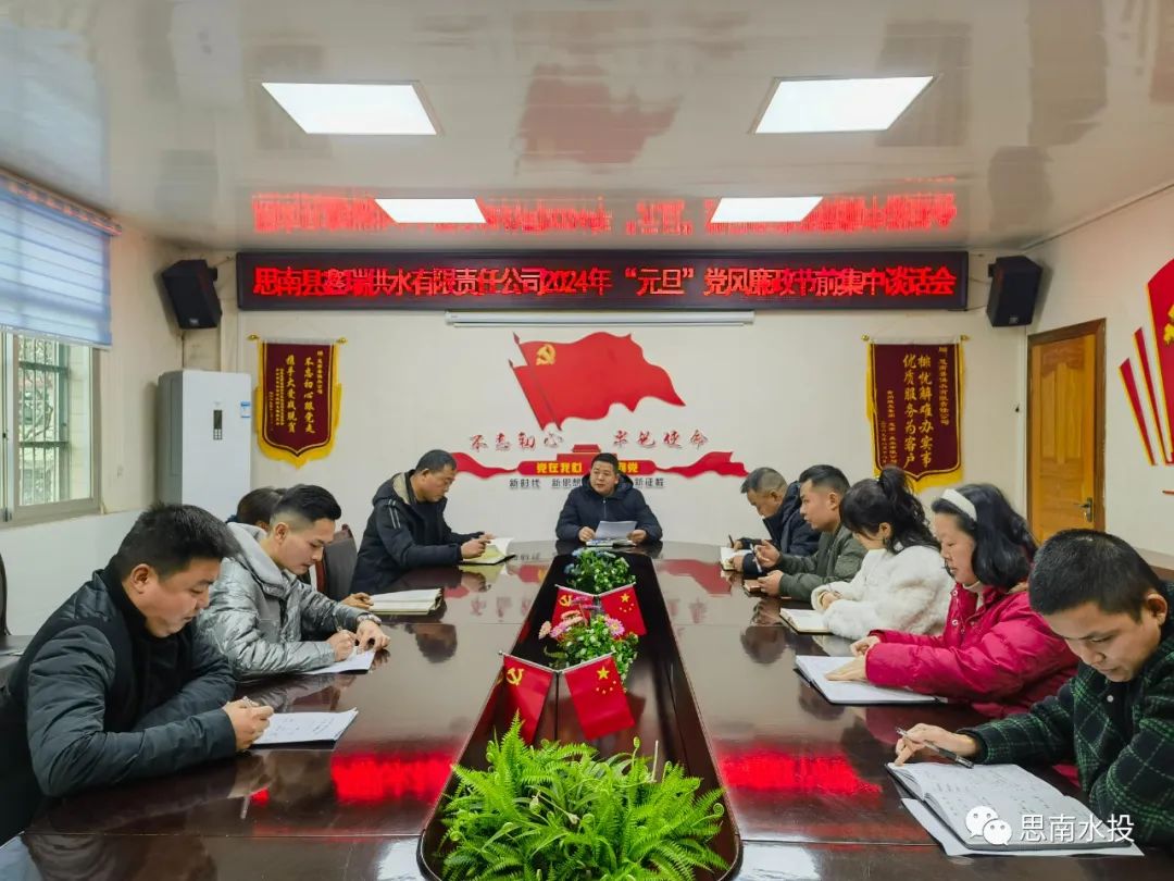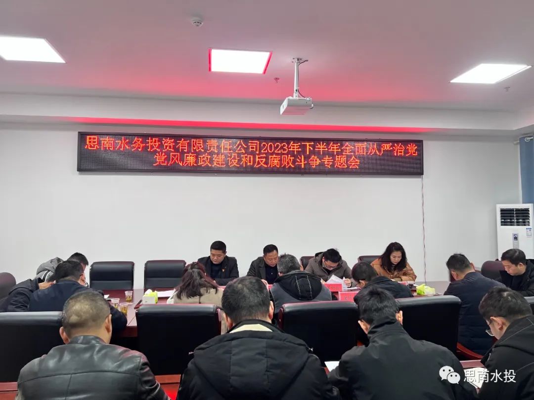 12月28日,县水投公司党委副书记、总经理朱应强组织召开2023年下半年全面从严治党党风廉政建设和反腐败斗争专题会及2024年元旦期间供水保障部署会,公司班子成员、全体职工及各子公司班子成员参加。