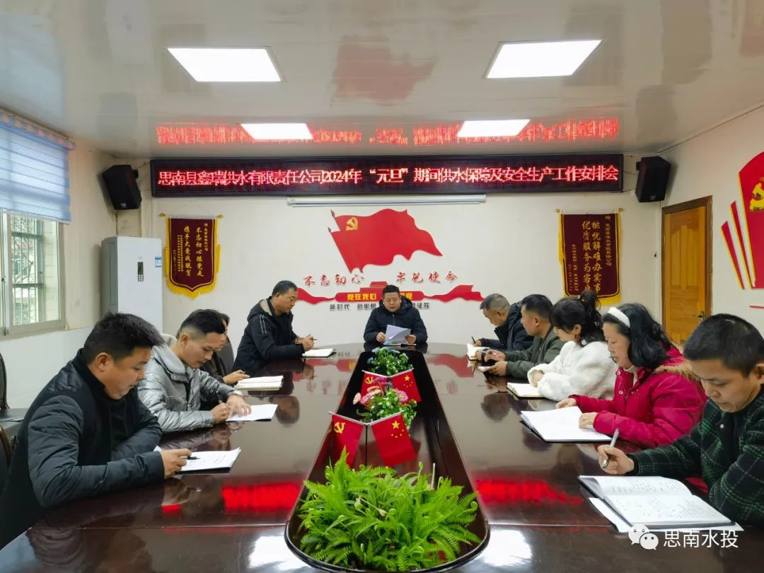 12月28日,县鑫瑞公司组织召开2024年“元旦”供水保障及安全生产工作安排会、2024年“元旦”党风廉政节前集中谈话会,公司班子成员、中层管理干部参加会议。