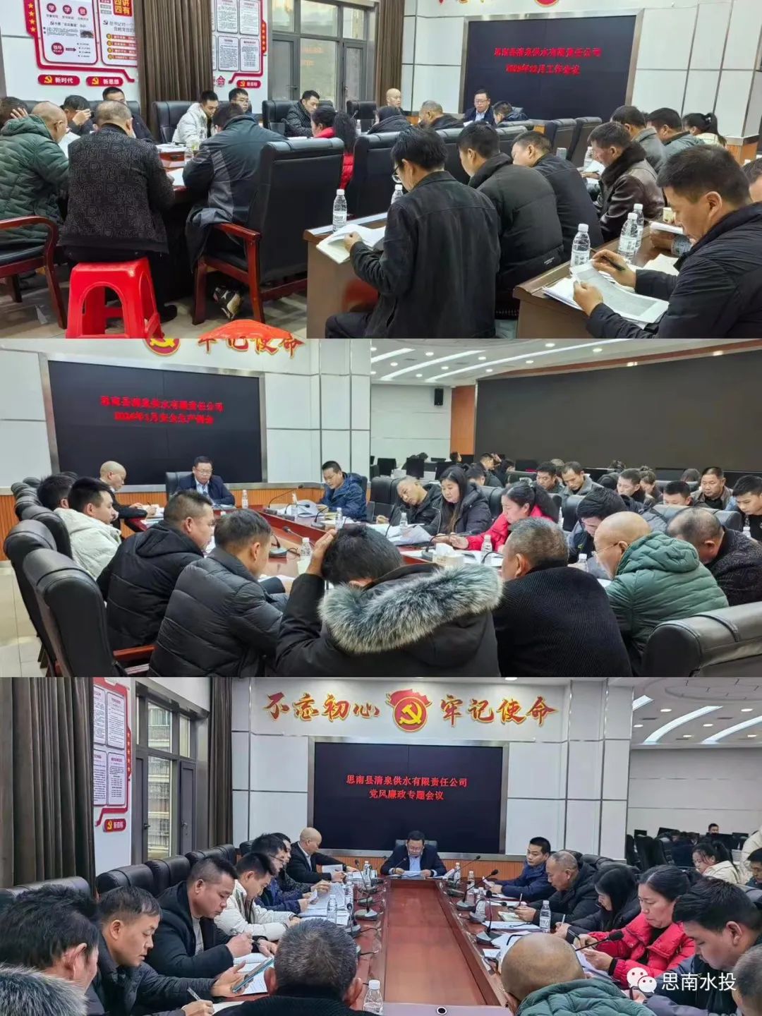 12月29日,县清泉公司组织召开2023年12月工作会议、2024年1月安全生产工作会议、党风廉政建设专题会议,公司全体干部职工参加会议。