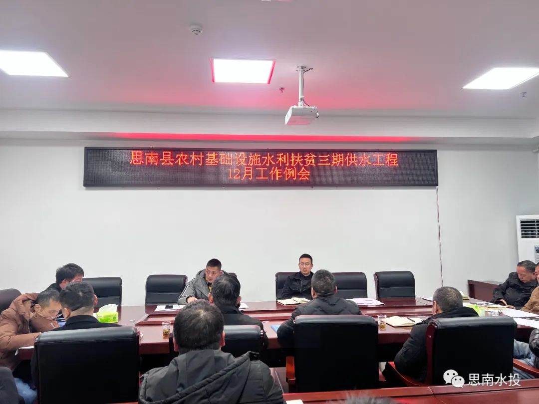 12月28日,县水投公司副总经理安侠芳组织召开思南县农村基础设施水利扶贫三期供水工程12月工作例会,监理单位、审计单位、施工单位人员参加会议。