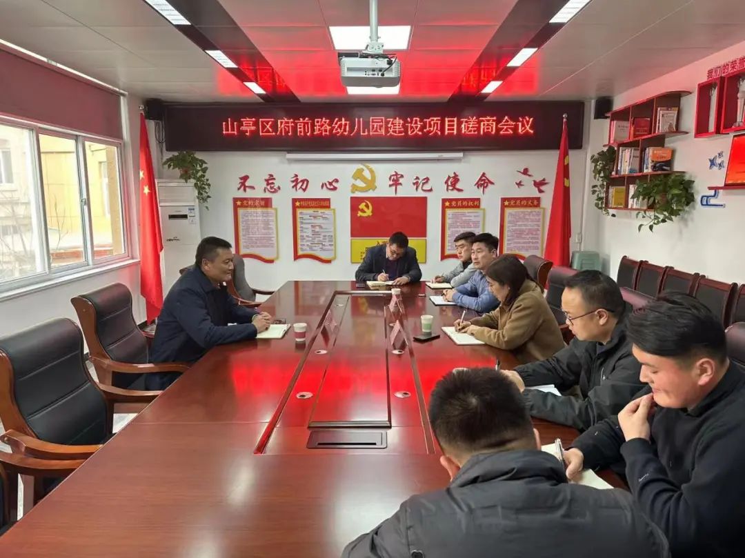 12月28日,安全总监王宗俊与会参建各方磋商山亭区府前路幼儿园建设项目。