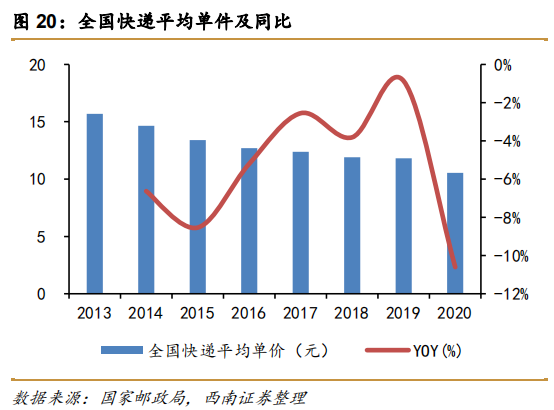 面对顺丰的这一系列行动,同行们倍感压力,纷纷采取应对措施,整个快递行业因此陷入了一场激烈的价格战。数据显示,2020年,物流行业的平均单价硬生生被打至10.6元,同比下降10.2%,创下7年以来的最大跌幅记录。