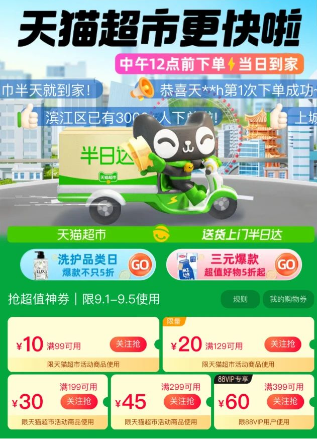 今年上半年,菜鸟联合天猫超市率先推出了1212半日达服务,打响了时效战的第一枪;紧接着,不甘示弱的京东物流在4月份上线了“云仓达”服务,为经销商提供了“半日达”的履约方案;另外,顺丰也对其同城快递产品进行了升级优化,推出了“同城半日达”服务,截至今年10月这项服务已覆盖了全国200多个城市。
