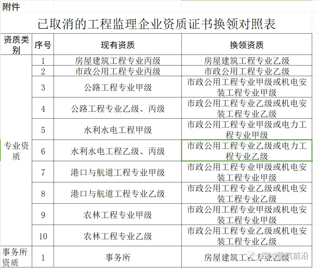 附件:已取消的工程监理企业资质证书换领对照表