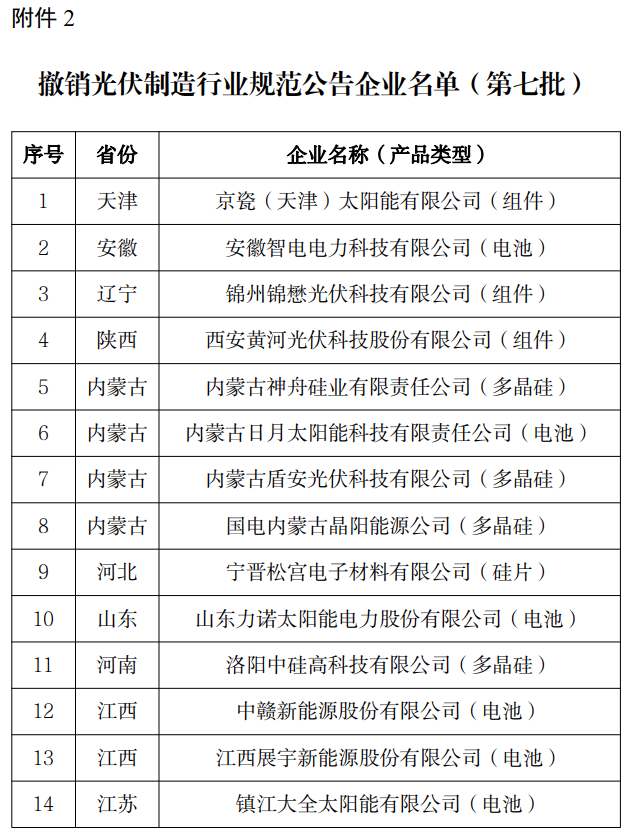 2.撤销光伏制造行业规范公告企业名单(第七批)