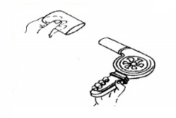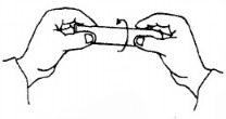 上图为操作滴定管活栓的手法。通常要以手轻握活栓,再用姆指和中指或食指来转动活栓,控制下滴液体的流速。