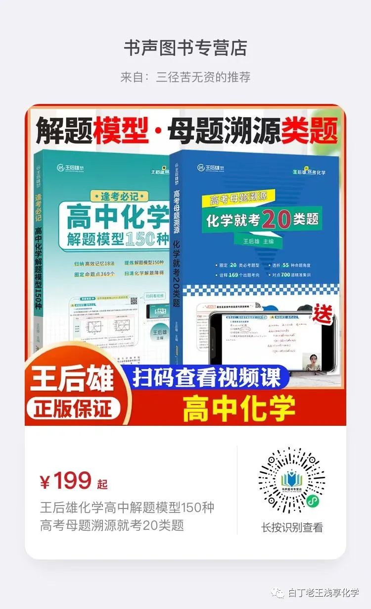 ❤温馨提示❤:微信公众号平台近期改变了推送规则,不再按发布时间排序推荐。想要不错过每日推送,可以把【白丁老王浅享化学】设为星标。致教师同仁:欢迎加入【白丁老王浅享化学】教师群,与全国化学教师交流教学,获取资源。加群请联系微信 W275039962,注明“加群”。