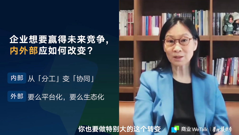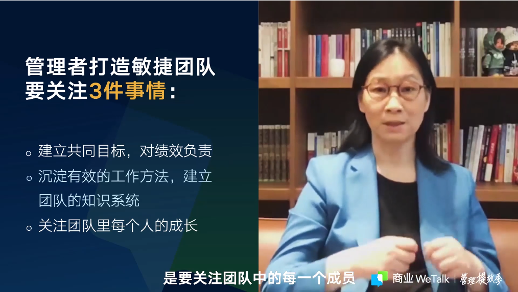 她表示,企业想要在变化的环境中站稳,乃至把不确定性变成机会,持续增长,就要将自身打造成「敏捷型组织」,只有这样才能实现稳定的、长期的发展。