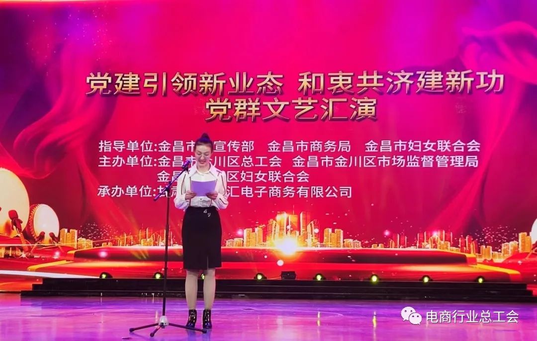 岁月不居,时节如流,转眼间又到了一年的岁末。在这个特别的时刻,甘肃省亿商汇电子商务有限公司电商行业工会举办了以"党建引领新业态·和衷共济建新功"为主题的党群文艺汇演,新的社会阶层人士、新业态群体在花文化博览馆欢聚一堂,伴随着冬日温暖的阳光,承载着喜悦的心情,用歌声贺新年,用舞步迎新春。本次活动在金昌市委宣传部,金昌市商务局,金昌市妇联的悉心指导下;在金川区总工会,金川区妇联,金川区市场监督管理局大力支持下,我们为新的社会阶层人士和新业态就业群体举办了这次别具生面的跨年文艺汇演活动。