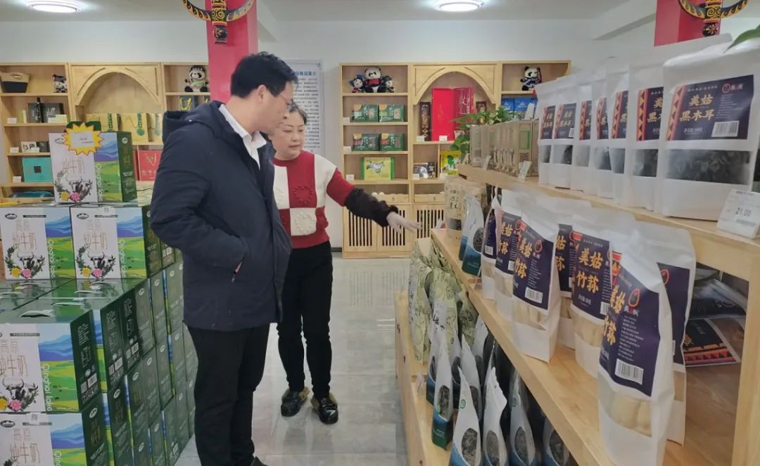 农投供应链公司负责人周智勇到凉山州农特产品宁波展销专馆对接产品销售工作。