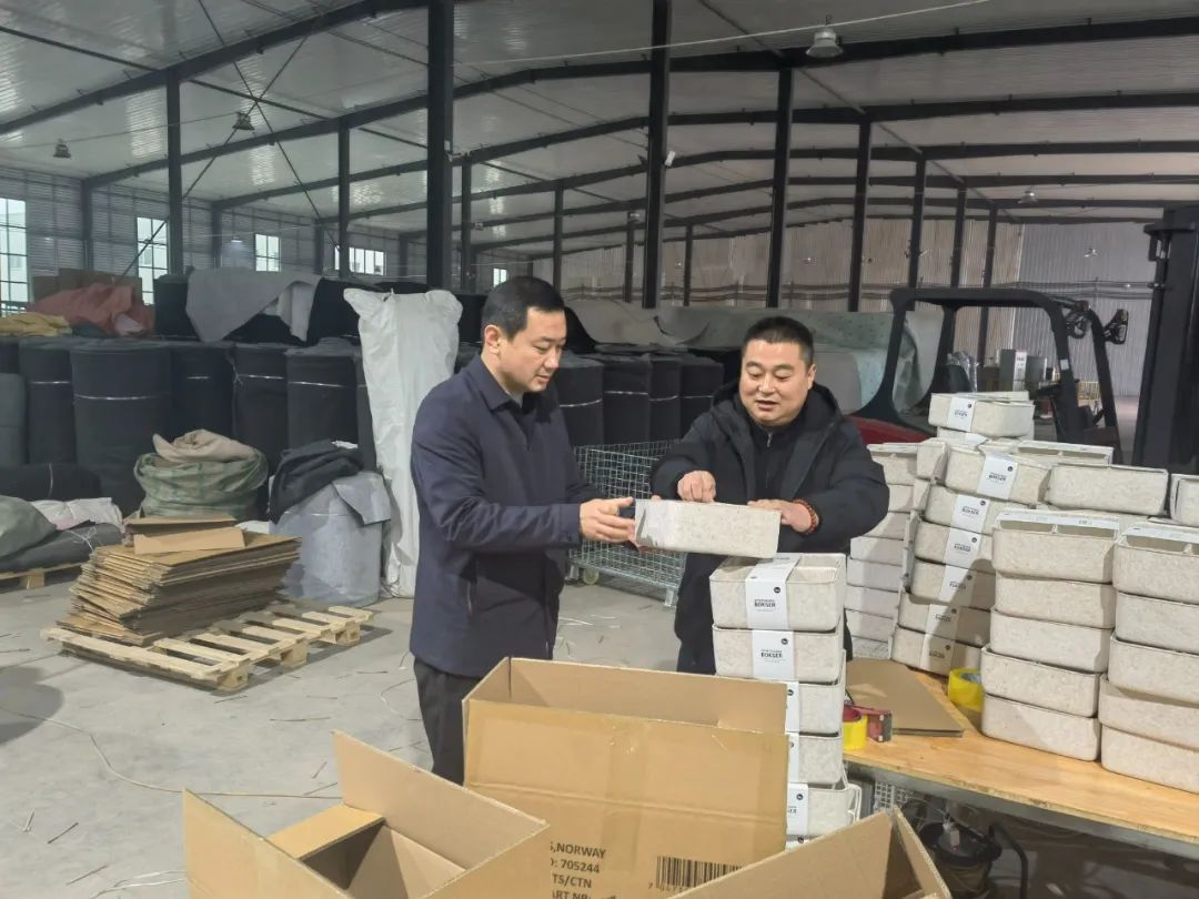 认真倾听企业诉求,现场协调解决困难问题,并就毛毡小镇项目谋划情况听取意见建议。