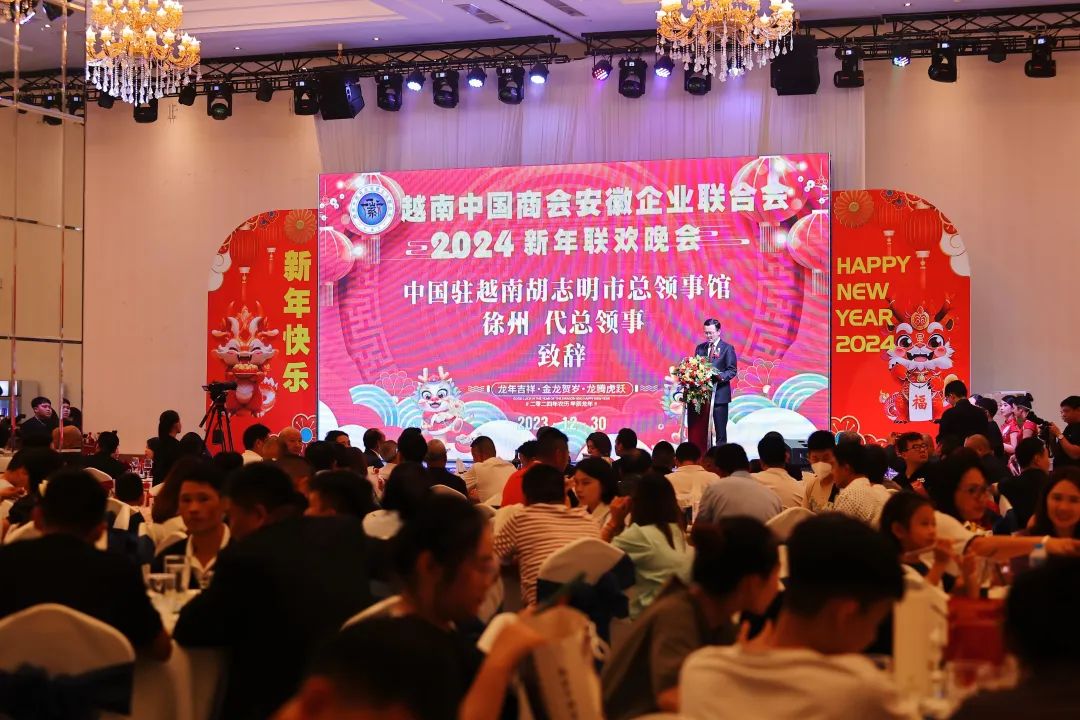 2023年12月30日,驻胡志明市代总领事徐州出席越南中国商会安徽企业联合会新年联欢晚会并致辞。越南中国商会胡市分会、各省企业联合会、港商、台商、华侨华人代表及越南友好人士等近600人参加。
