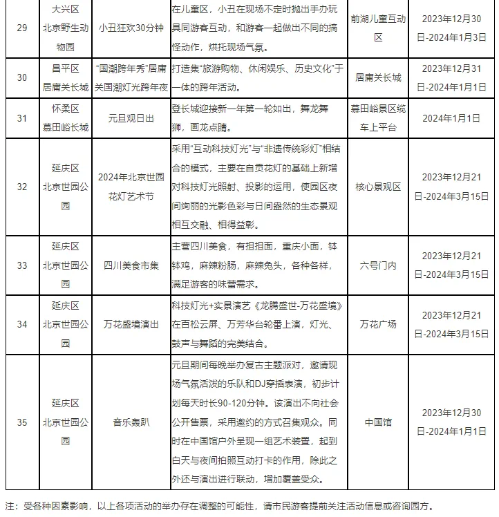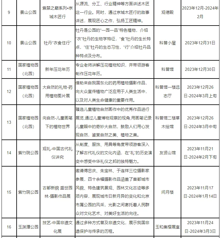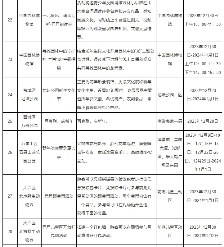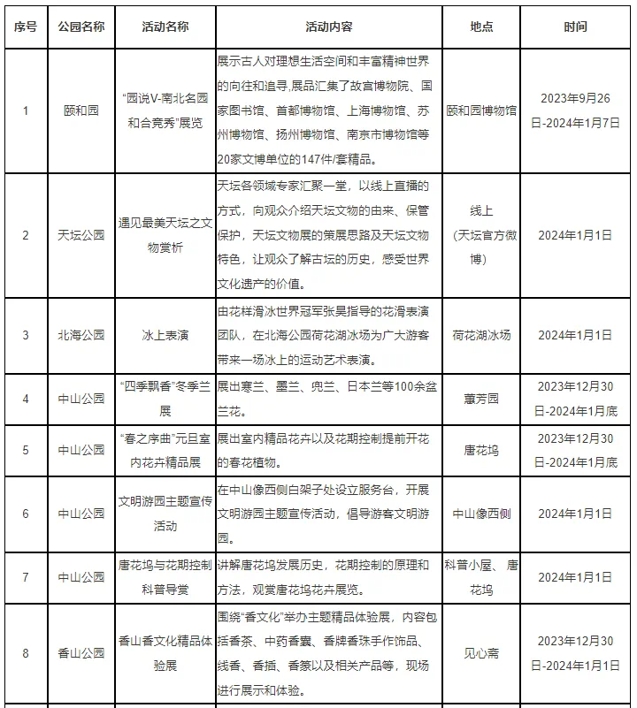 元旦期间,北京市属公园及中国园林博物馆将举办“园林之美、花草之香、序曲之春、冰雪之乐”四大类、29项活动。