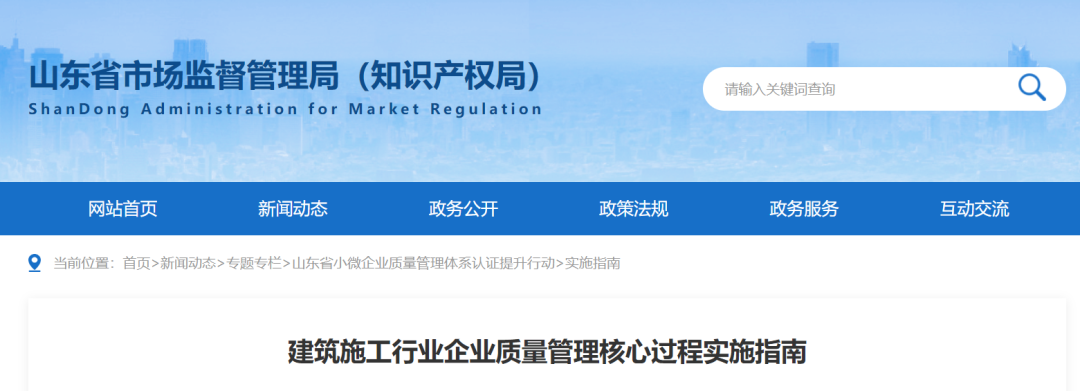 近期,为了充分发挥质量认证对小微企业提质升级的作用,巩固小微企业质量管理体系认证提升行动,山东省市场监督管理局发布了《建筑施工行业企业质量管理核心过程实施指南》。
