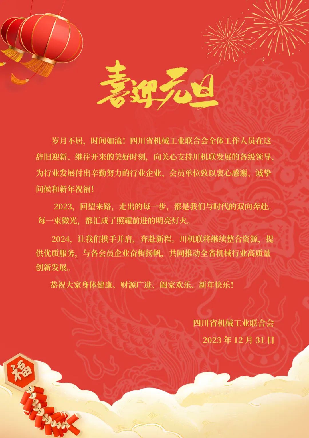 四川省机械工业联合会祝各行业企业、会员单位元旦快乐!