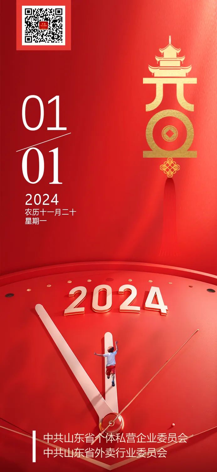 中共山东省个体私营企业党委、中共山东省外卖行业党委在这里祝大家福启新岁、万事顺遂;元旦快乐、兴业腾达!