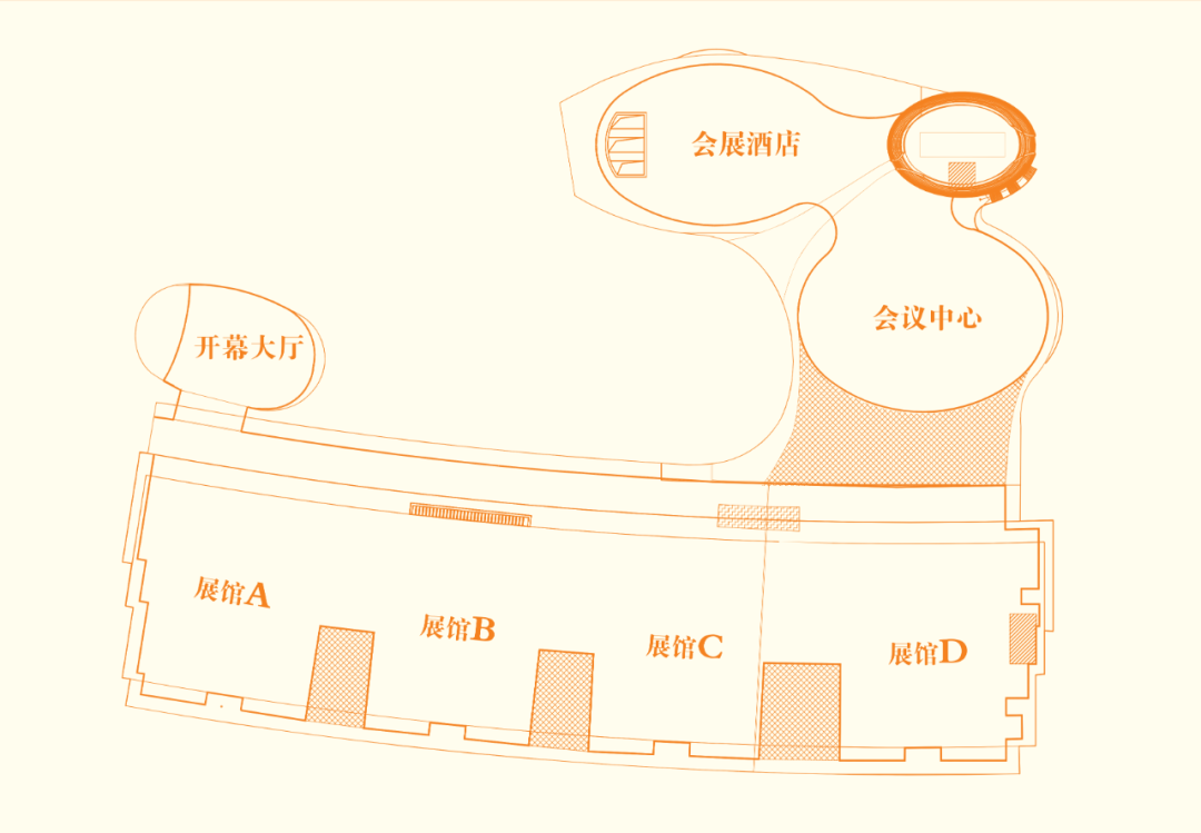 展览展示中心包括A、B、C、D四个展馆,其中:A、B、C展馆为单层展厅,净高18米,D展馆为双层展厅,净高约5米,各个展厅净面积均为3600平方米,室内净展览总面积可达1.9万平方米,可设置国际标准展位800-1000个。