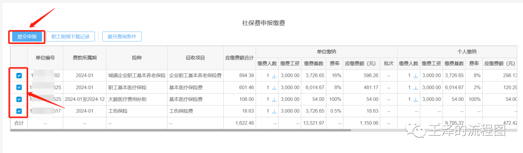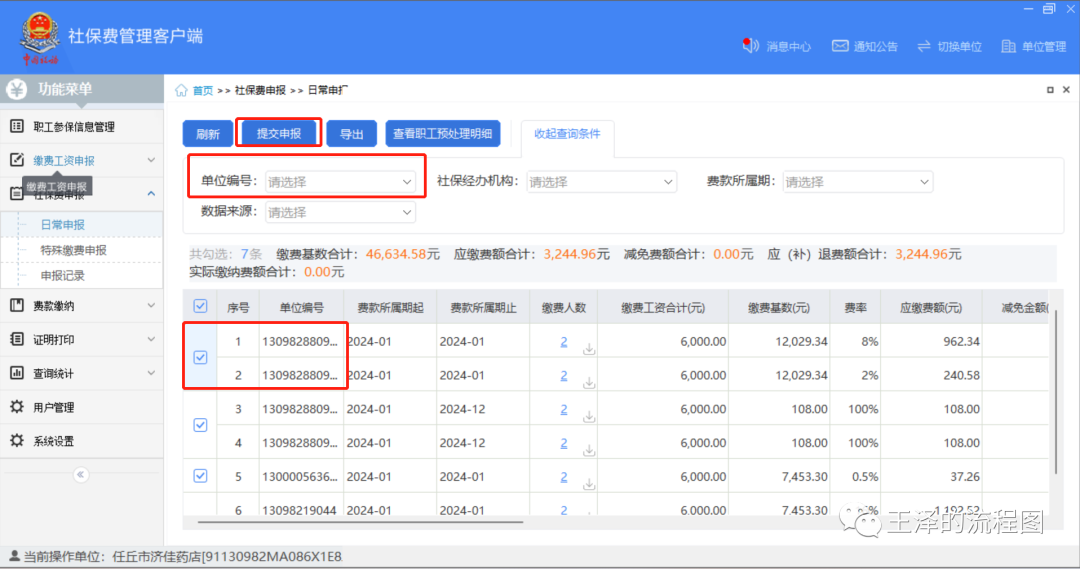 建议选择单位编号-养老、医疗、工伤,分别申报
