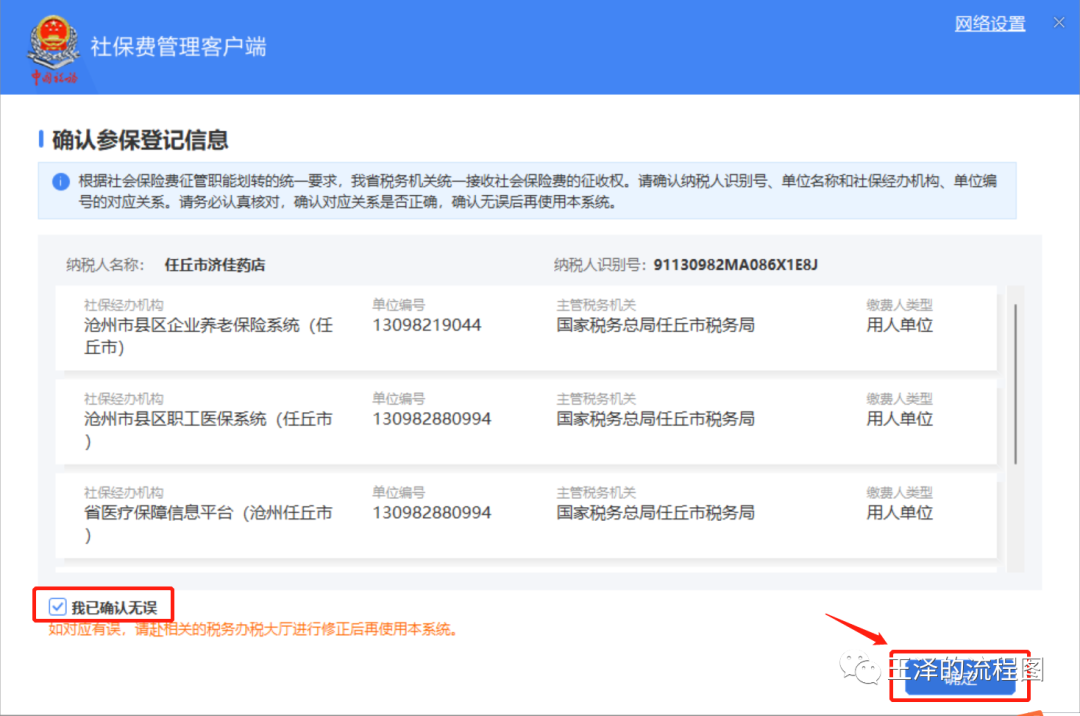 核定带出的参保登记信息-点击(我已确认无误)-确定