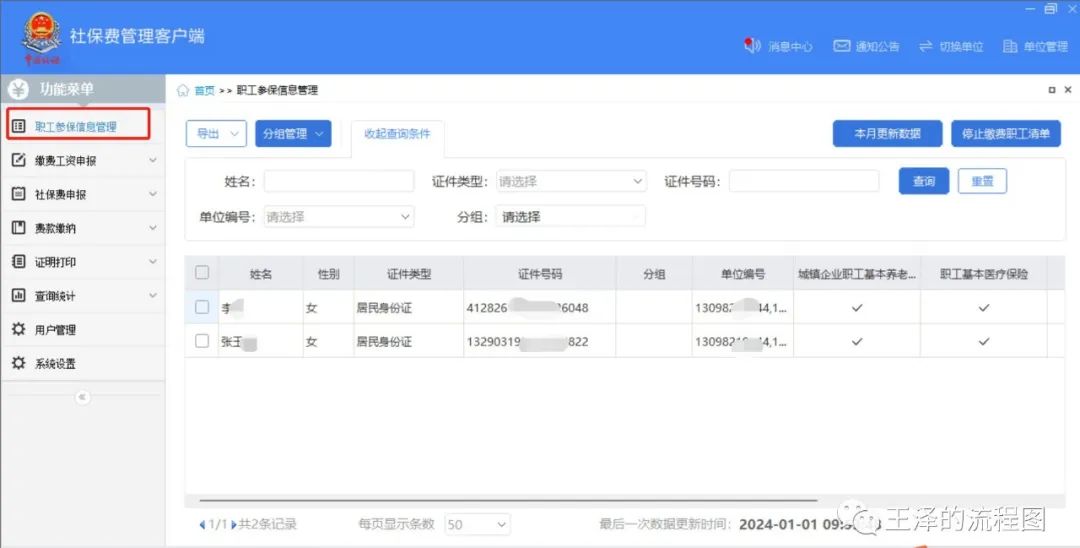 点击职工参保信息管理-核对带出的人员信息参保险种是否正确