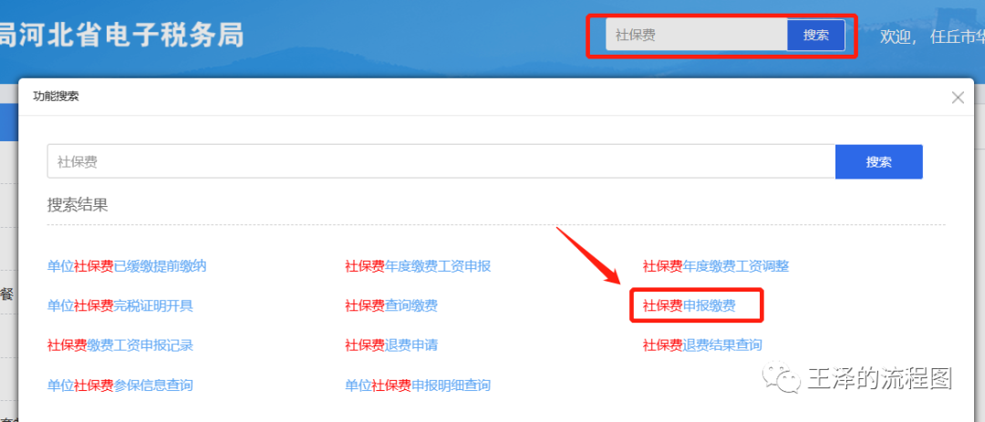 关联审批通过后登录河北省电子税务局搜索(社保费)-社保费申报缴费