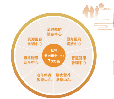 区域养老服务中心通过设置“两堂三区”,即社区餐厅、老年学堂、托养服务区、医养服务区、居家服务区,打造居家、社区、机构三位一体养老服务场景新模式,融合“居、医、养、食、乐、智、健”七位一体养老服务体系,丰盈医养康养相结合的市场化养老服务供给体系,保障老年群体从活力自理到协助生活,再到专业护理的全周期、综合性、普惠型医养康养的多层次服务需求。