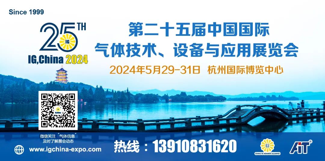 IG CHINA 品牌展25周年logo正式对外发布!回首走过的这25年,筚路蓝缕,玉汝于成!时光荏苒,我们不改初心。我们用自己的专业和汗水逐梦、筑梦、圆梦。IG, CHINA品牌展会自1999年到2023年,从最初的3,000平米、111家参展商发展到13,000平米、 250多家参展商;从初次登场到成长为如今位居中国乃至全球领先的大型气体专业品牌展会,24年的成长和发展历史,见证了中国经济的发展与气体产业的规模化,见证了中国气体产业的变迁与市场的成熟,见证了中外气体企业的奋斗之路!作为全球气体行业独具影响力的领军盛会——中国国际气体技术、设备与应用展览会(IG, CHINA)历经过去24年的发展壮大,已成为涵盖全球气体行业全产业链的贸易展,组委会定于2024年5月29-31日在杭州国际博览中心举办主题为“25年同舟共济,寻求突破与发展”的“第二十五届中国国际气体技术、设备与应用展览会(IG, CHINA 2024)”。IG, CHINA 2024展会将设立6大专题展区(1.气体分析、检测仪器展区;2.气体储存设备展区;3.气体运输、包装设备展区;4.气体阀门展区;5.特种气体应用技术展区;6.海外产业园展区)向全球气体行业的特邀买家推出和展示新技术、新产品和新应用,涵盖工业气体、特种气体、医用气体、液化天然气等。展会同期还将举办以“25年同舟共济,寻求突破与发展”为主题的开幕式及系列颁奖典礼、技术/经贸专题论坛、中外采购商B2B对接会等精彩纷呈的活动及海外VIP嘉宾商务考察。展望2024年,我们将一如既往与气体行业的企业家们并肩作战,共谋未来发展出路,帮助他们开拓产品销路,深耕潜在市场。展会动态,敬请关注官方微信号:气体信息或国际气体展。