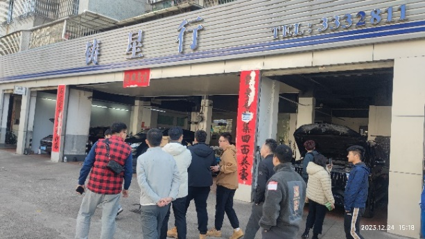 转场第二位东道主,同样为07级的校友王峰雷,分别参观了其企业:珠海悦星行汽车销售服务有限公司、铸星行汽车服务有限公司、珠海星安T3出行公司。王峰雷校友介绍了其企业发展历程,产业遍及汽车维修服务、销售、二手车市场、改装、T3出行平台管理、车辆租赁等多方面的汽车服务市场,拥有丰富的汽车服务领域投资经验。交谈中高度支持校友的交流、合作,对汽车校友会发展的大力支持。