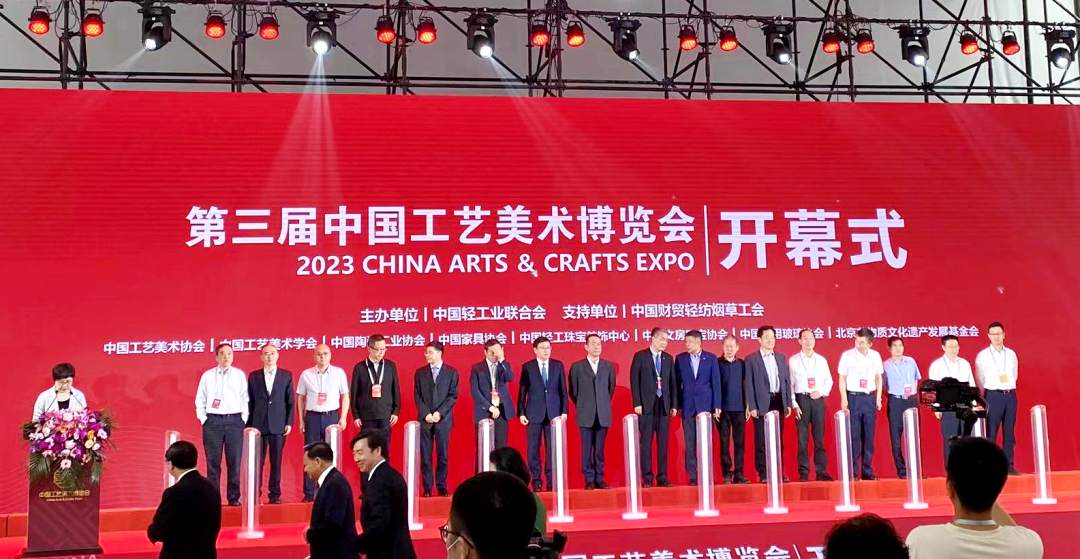 5月26日-29日,由中国轻工业联合会主办的第三届中国工艺美术博览会在南京举办。工信部消费品工业司二级巡视员邓小丁,中华全国总工会书记处书记、党组成员邹震,中国轻工业联合会党委书记、会长张崇和,江苏省政协副主席张乐夫等领导出席开幕式并讲话。