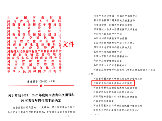近日,省食检院有限公司被共青团河南省委授予河南省“青年文明号”荣誉称号。据悉,共青团河南省委联合16家单位在全省范围内开展“2021-2022年度河南省青年文明号”申报推荐活动,313个集体获此殊荣,省食检院有限公司被授予“一星级河南省青年文明号”荣誉称号。