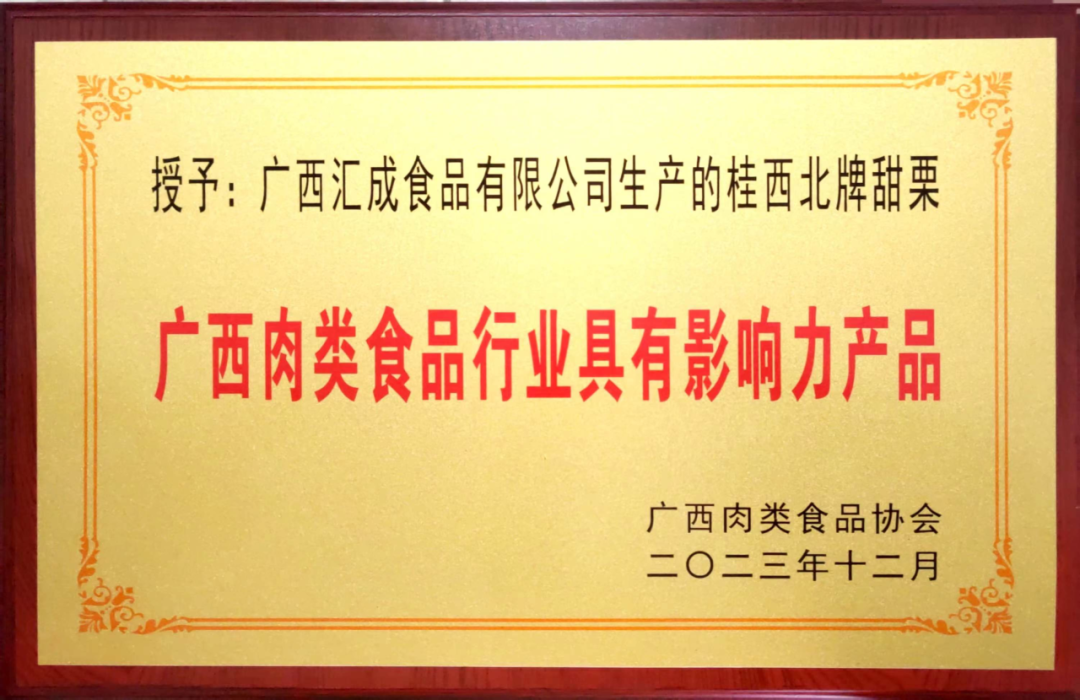 近期,广西肉类食品协会开展了广西肉类食品行业具有影响力产品、有影响力企业评选活动,明园集团广西汇成食品有限公司生产的“桂西北”甜栗以“肉质细腻、香糯粉甜”的品质畅销全国各地,被评为“广西肉类食品行业具有影响力产品”。
