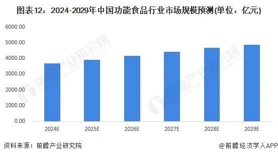中国功能食品产业经过多年快速发展,已经逐渐壮大。虽然仍面临诸多挑战,但在市场需求、技术进步和管理更新的推动下,中国功能食品产业发展空间巨大,市场前景较好。功能食品未来的发展趋势是产品将进一步细化、第三代功能食品食品将成为主流以及未来将采用高科技生产:——行业发展前景:预计到2029年功能食品市场规模突破4858亿元当前功能食品受众已逐步向年轻群体渗透,该趋势将随着健康中国战略的实施而进一步扩大。与此同时,中国老龄化人口加剧,保健品刚需属性加强。同国外发达市场相比,中国功能食品整体市场规模仍然较小,随着消费群体的扩大以及消费能力的提升,功能食品市场的消费潜力将逐步得到释放,行业迎来发展蓝海。至2029年,中国功能食品市场规模有望突破4858亿元。同时前瞻产业研究院还提供产业大数据、产业研究报告、产业规划、园区规划、产业招商、产业图谱、智慧招商系统、行业地位证明、IPO咨询/募投可研、IPO工作底稿咨询等解决方案。在招股说明书、公司年度报告等任何公开信息披露中引用本篇文章内容,需要获取前