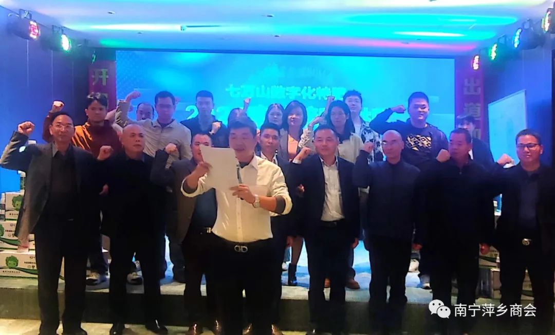 12月29日上午,商会会长曾勇带队,监事长刘鹏、副会长罗雪华、副会长李丰萍、秘书长陈润华、秘书处主任黄涛一行参加了广西孺子牛生物科技有限公司在新西里麓岚大酒店举办的七万山数字化特肥2024农资新商机广西区招商启动会。