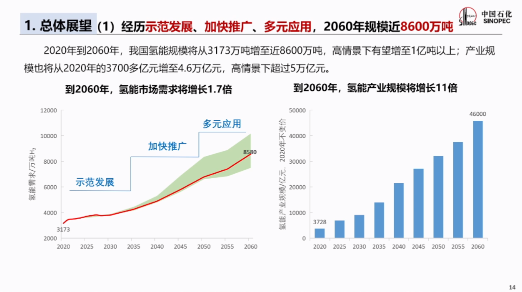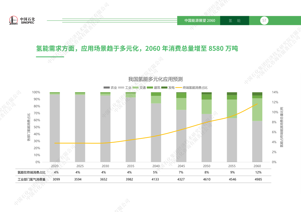 12月28日,中国石化正式发布《中国能源展望2060(2024年版)》《中国氢能产业展望报告》和《2024中国能源化工产业发展报告》。其中,《中国氢能产业展望报告》是中国石化首次发布氢能领域的展望报告,报告显示,2060年我国氢能消费规模将达到近8600万吨,产业规模4.6万亿元,预计2060年,氢源结构将发生根本性转变。