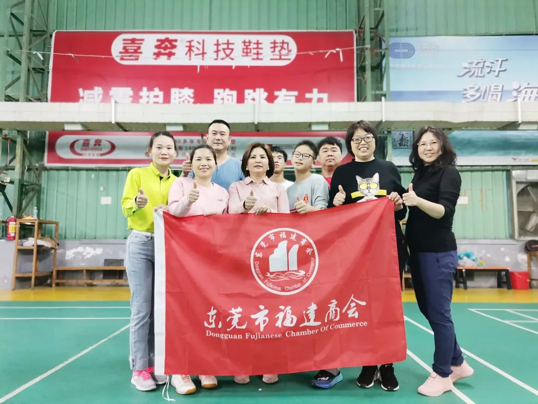 本次联谊赛由东城分会羽毛球队队长陈嘉鑫,本月办事处(分会)执行会长张允俊、许天愿组织,东莞市福建商会常务副会长兼妇委会主任吴清玉、东城办事处(分会)副秘书长陈亚艺等商会领导,以及20多位会员参加活动。