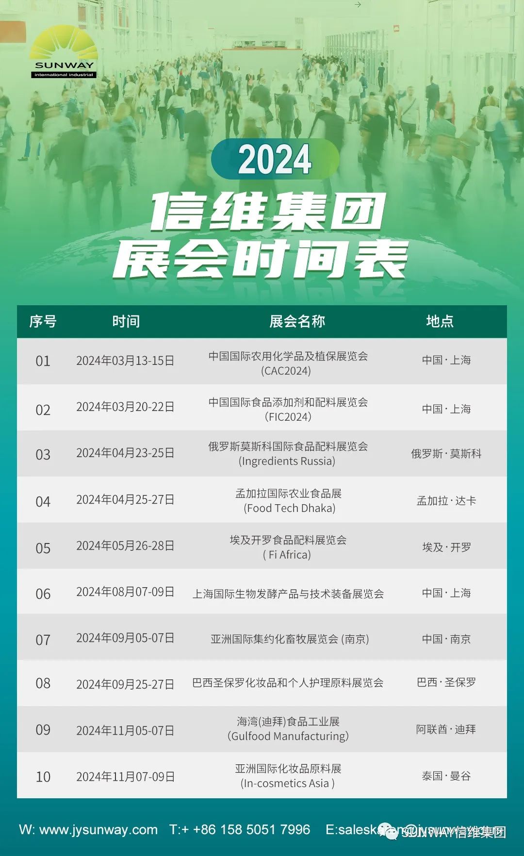 信维集团成立于2014年,深耕食品添加剂、饲料添加剂和日用化工品10余年,是一家拥有多项行业资质证书和包装设计专利的一站式解决方案提供商。旗下拥有两个自主品牌,SUNWAY和YDAWAY。公司一直致力于为全球食品、饲料、日用化工品行业提供绿色环保原料。