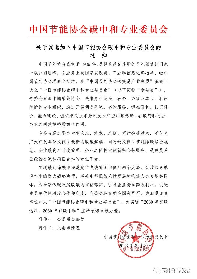 申请加入中国节能协会碳中和专业请联系