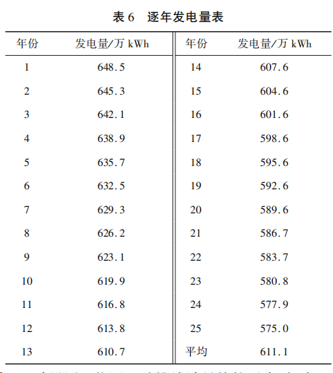 25年年均发电量611.1万kWh,总发电量15277.0万kWh。