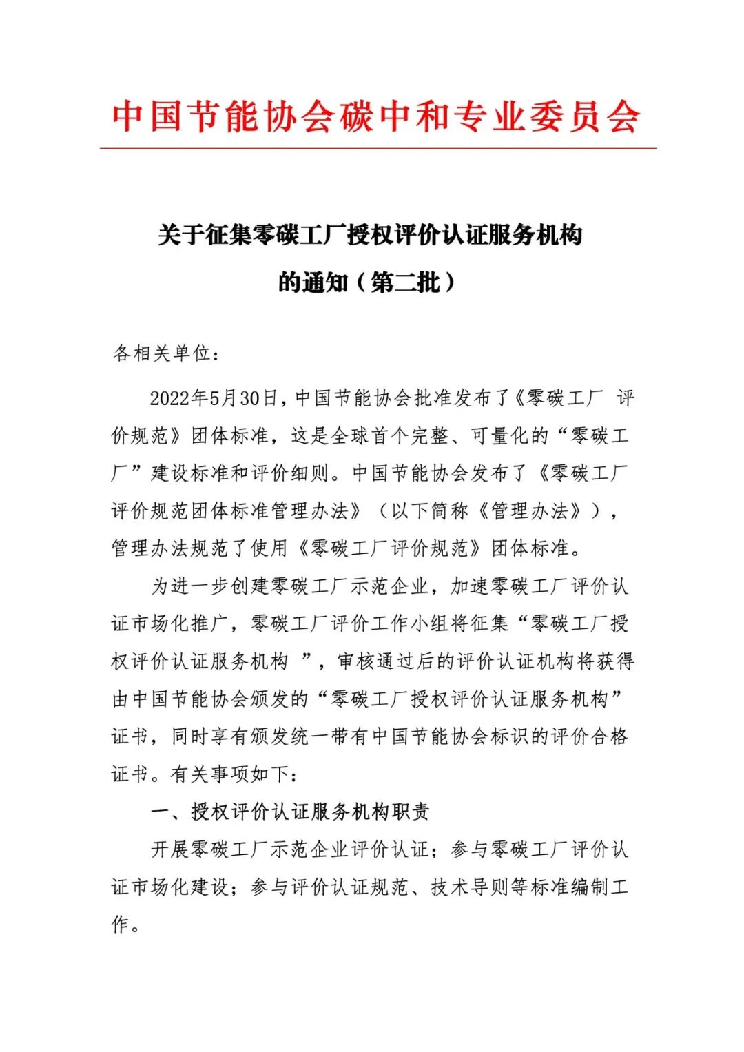 第一批零碳工厂授权评价认证服务机构名单公示