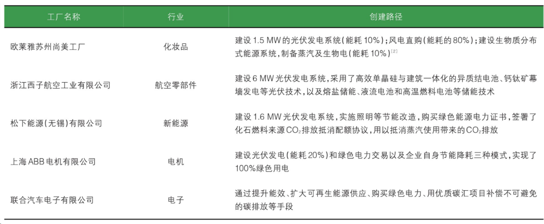 ▲ 国内外企业零碳工厂创建案例