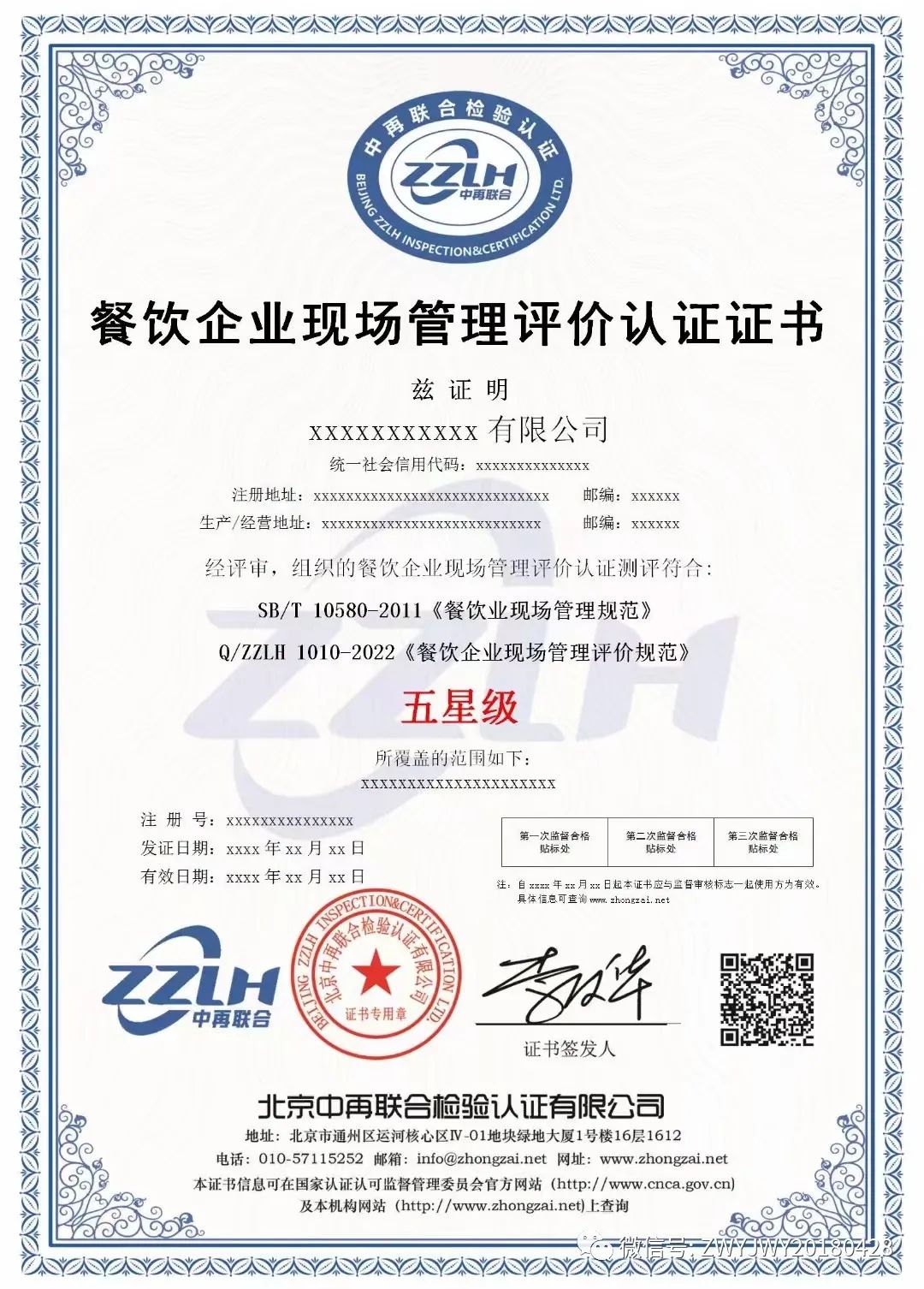 5.颁发证书:经过审核验收合格的企业,认证机构将颁发餐饮企业现场管理评价认证证书。证书有效期一般为三年,企业需定期进行复审。