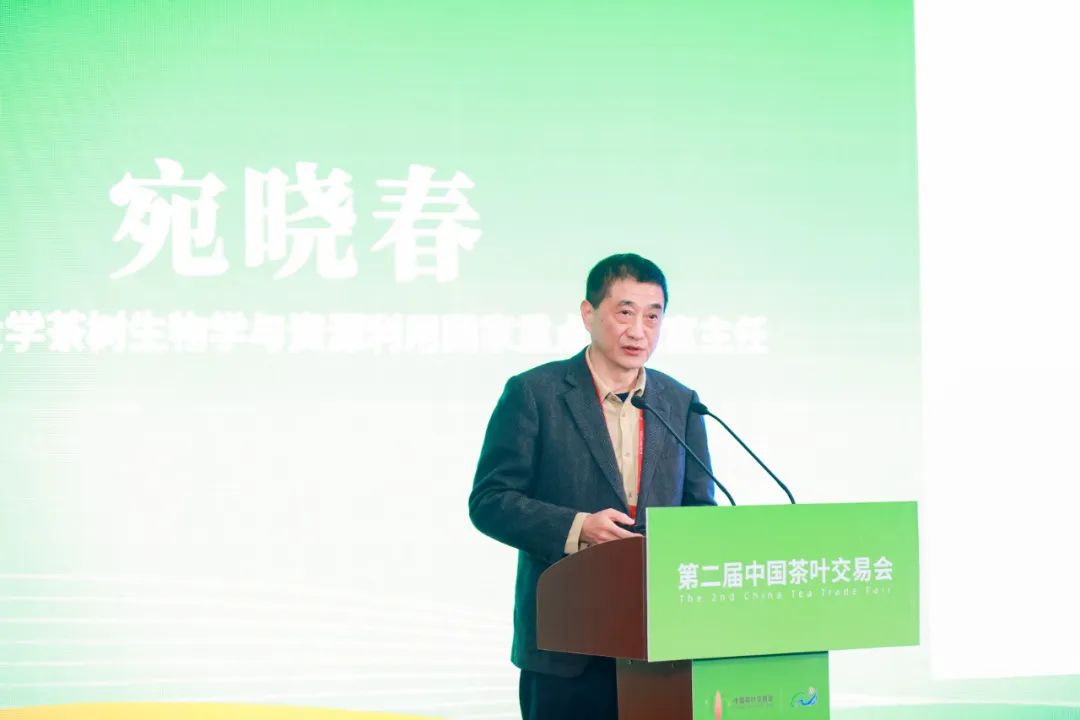 安徽农业大学茶树生物学与资源利用国家重点实验室主任宛晓春进行《茶科技助力中国茶业发展》主旨演讲。