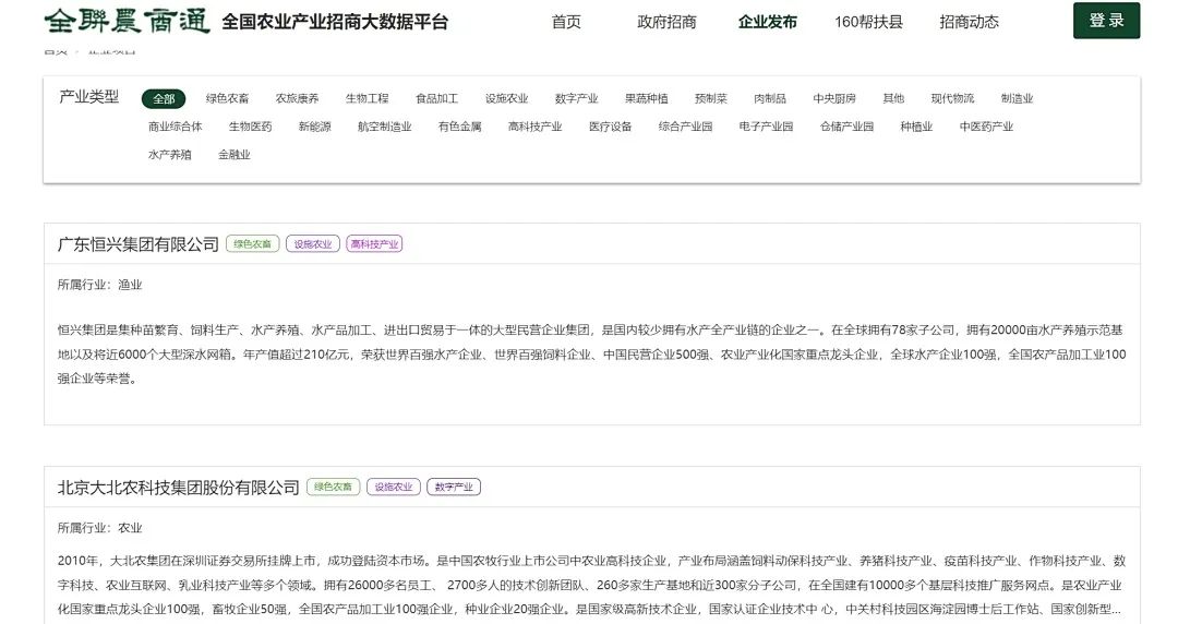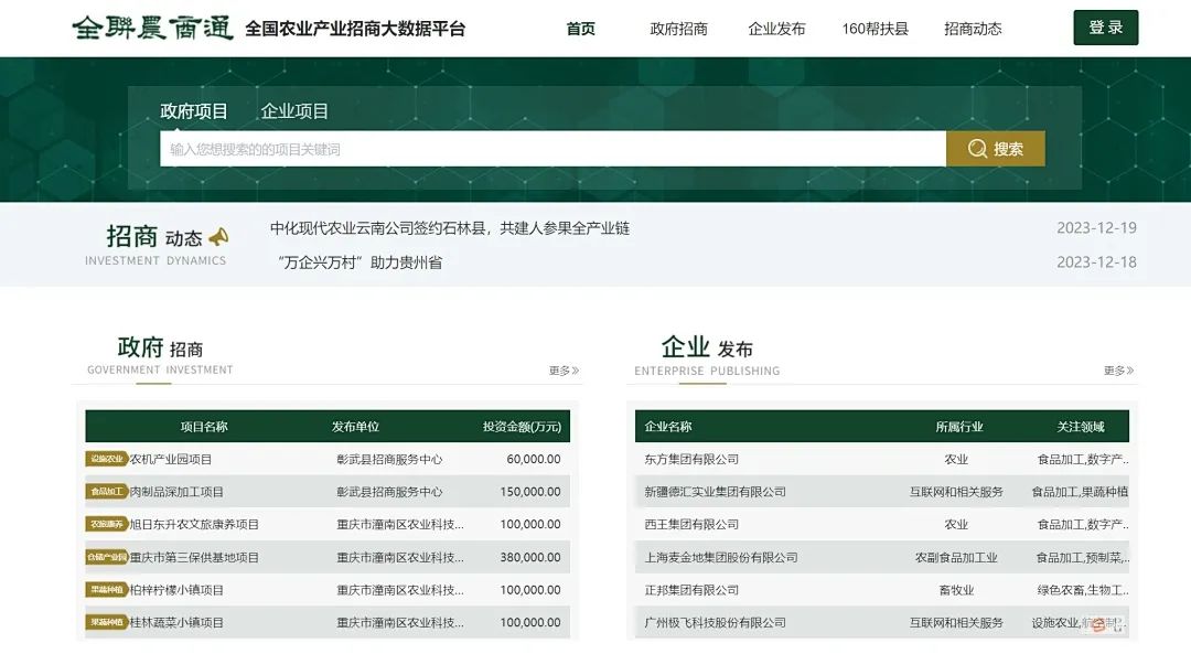 近日,商会建立了全国性的农业产业招商大数据平台——“农商通”,以发布县域政府招商引资项目与会员企业项目。