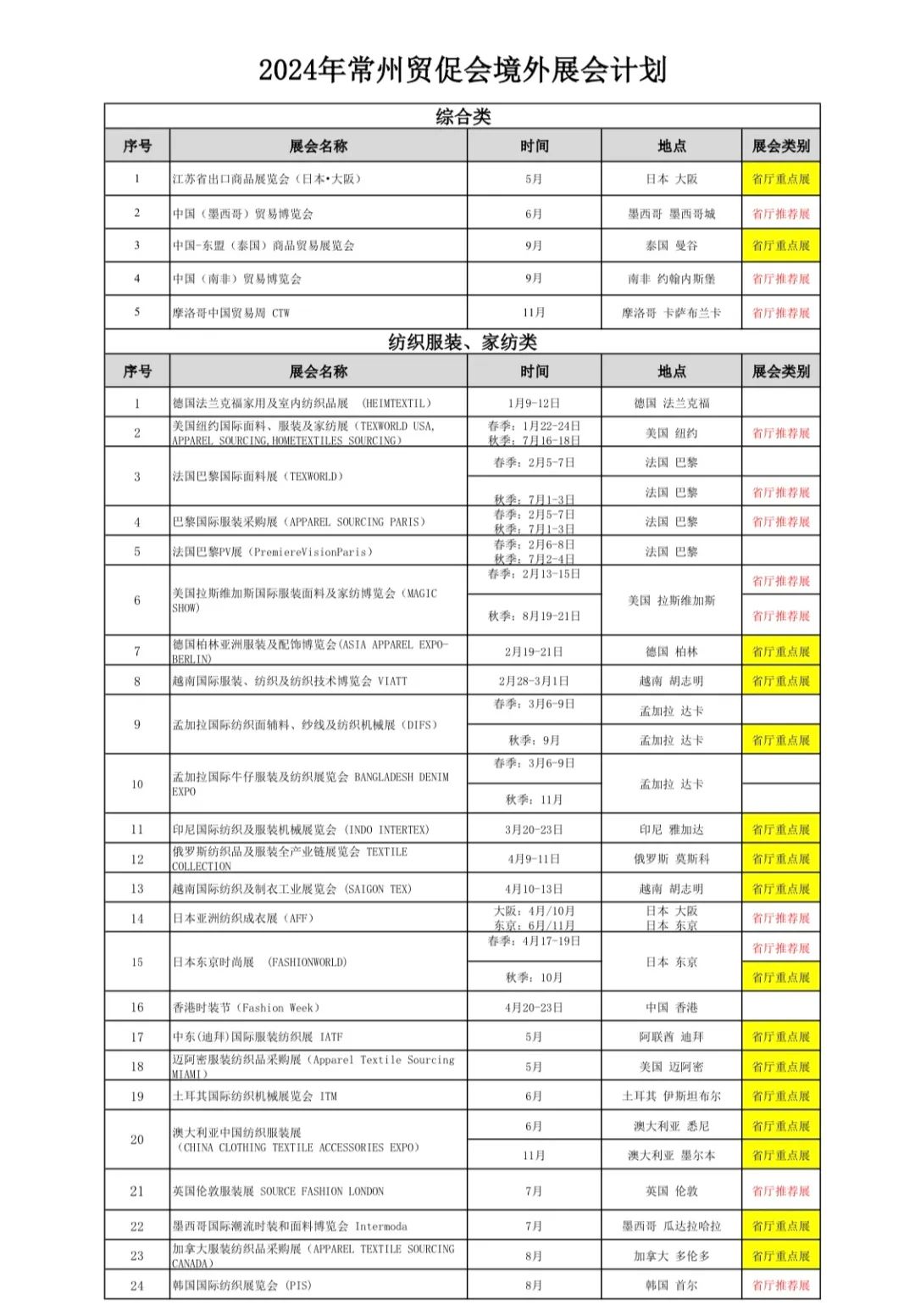 2024年常州贸促会境外展会计划